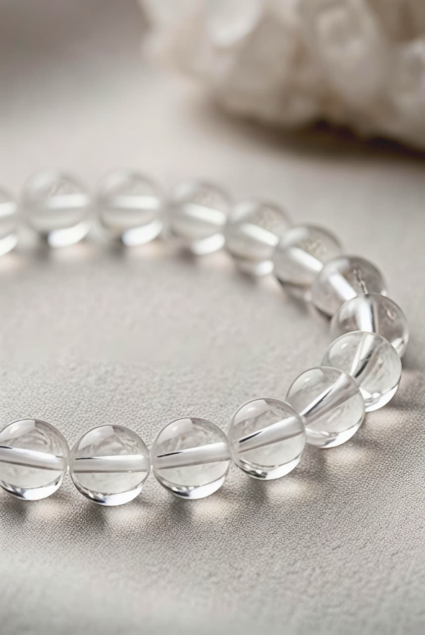 स्फटिक (Clear Quartz) हे शुद्धता आणि सकारात्मक ऊर्जेचे प्रतीक मानले जाते. हे नैसर्गिक स्फटिक मण्यांपासून तयार केलेले ब्रेसलेट मनाला शांत ठेवते आणि नकारात्मक ऊर्जा दूर करण्यास मदत करते.